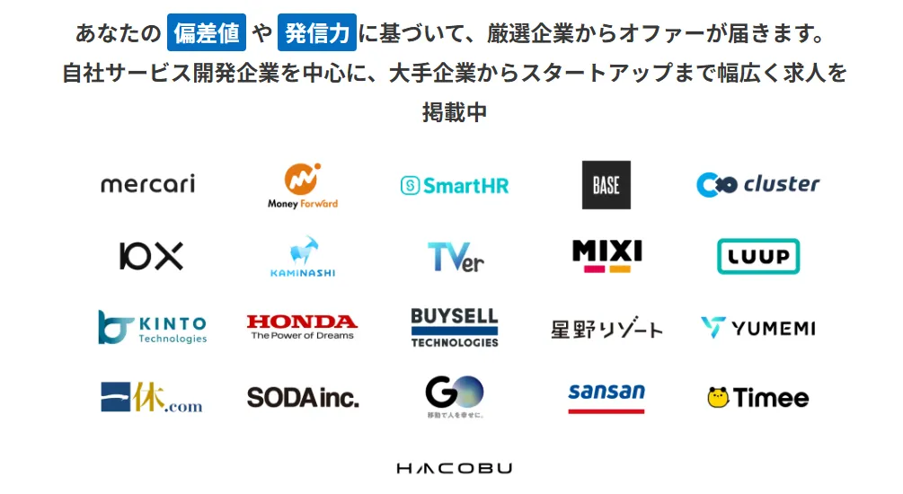Findyはこれまでに多くの企業と取引をした実績があり、大手からスタートアップまで幅広い企業の求人を取り扱っています。