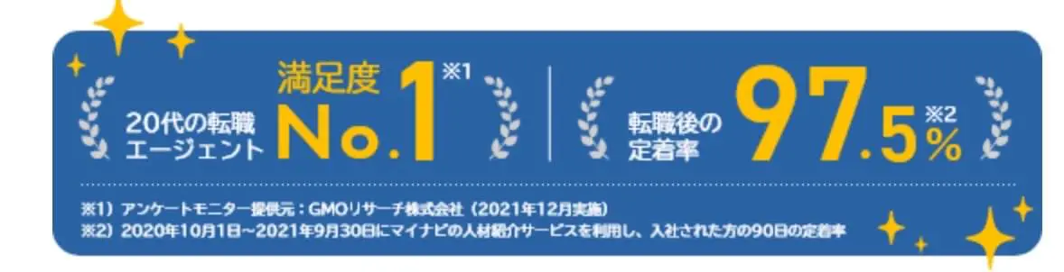 また、マイナビAGENTは、20代の転職エージェントで満足度第1位を獲得した実績があります。(2021年12月時点)