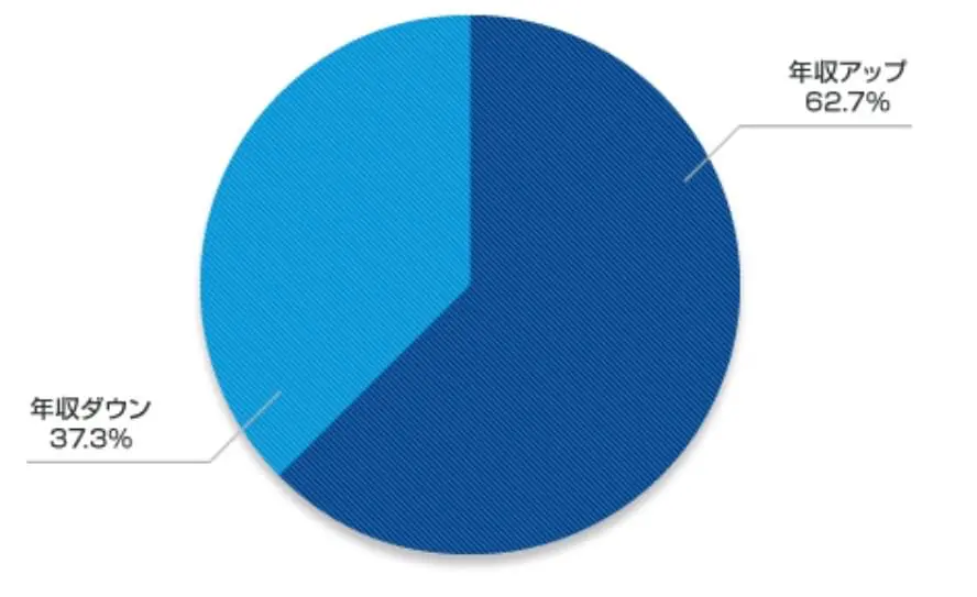- 転職成功者の半数以上が年収アップ